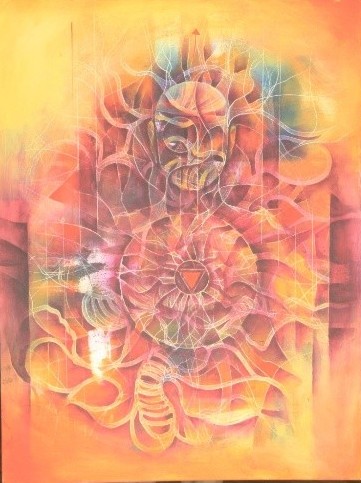 Through intricate lines and luminous textures, the painting becomes a visual meditation on transformation. It invites the viewer to experience the sacred fire within—the force that dissolves limitation and ignites the journey toward awareness and renewal.