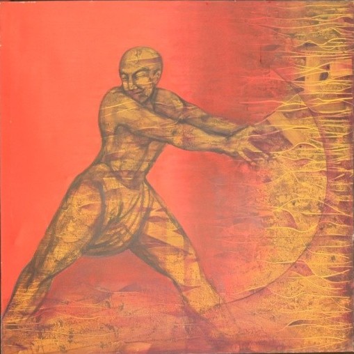 Shaping Destiny portrays the human spirit engaged in a powerful act of creation and transformation. The dynamic figure appears to push against a luminous circular force, symbolizing the effort required to shape one’s own path in life.
